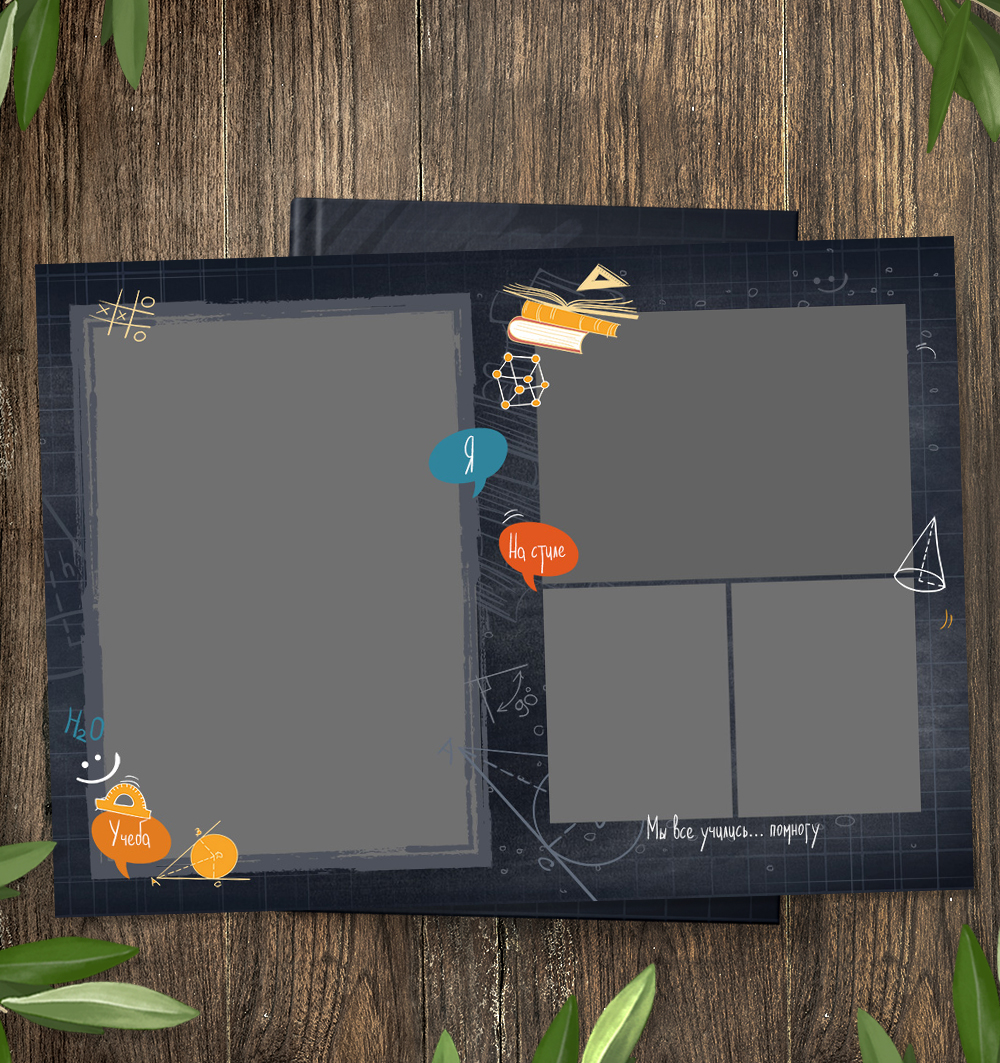Развороты в темном ключе. На выбор есть еще макет с разворотами в светлом ключе. Обложка без изменений.
