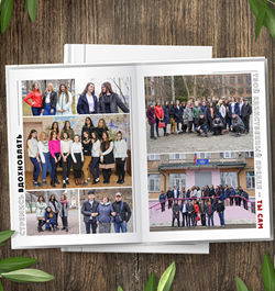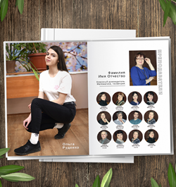Обложка и 5 разворотов: 2 варианта виньетки, преподаватели, общие фото.