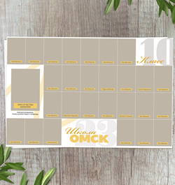 В макете главное фото для учителя и 27 окошек для одноклассников.