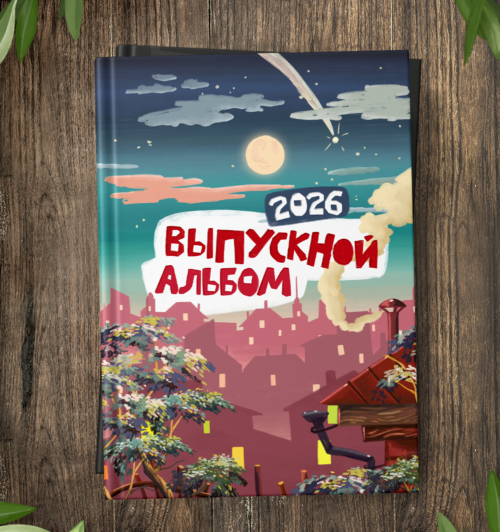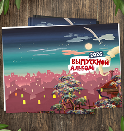 Надпись "Выпускной альбом" одним слоем (рисунок). К макету прилагаются цифры от 0 до 9 для самостоятельной корректировки года. В макете год прописан до 2030.