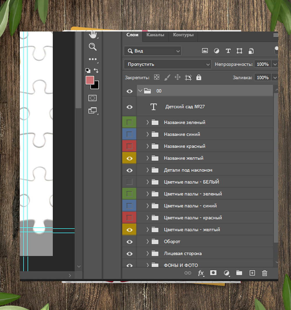 На обложке 4 фона: синий, зеленый, желтый, красно-розовый. Соответствующие цвета деталей в отдельных папках, включаете нужную папку с цветными пазлами в зависимости от главной фотографии.