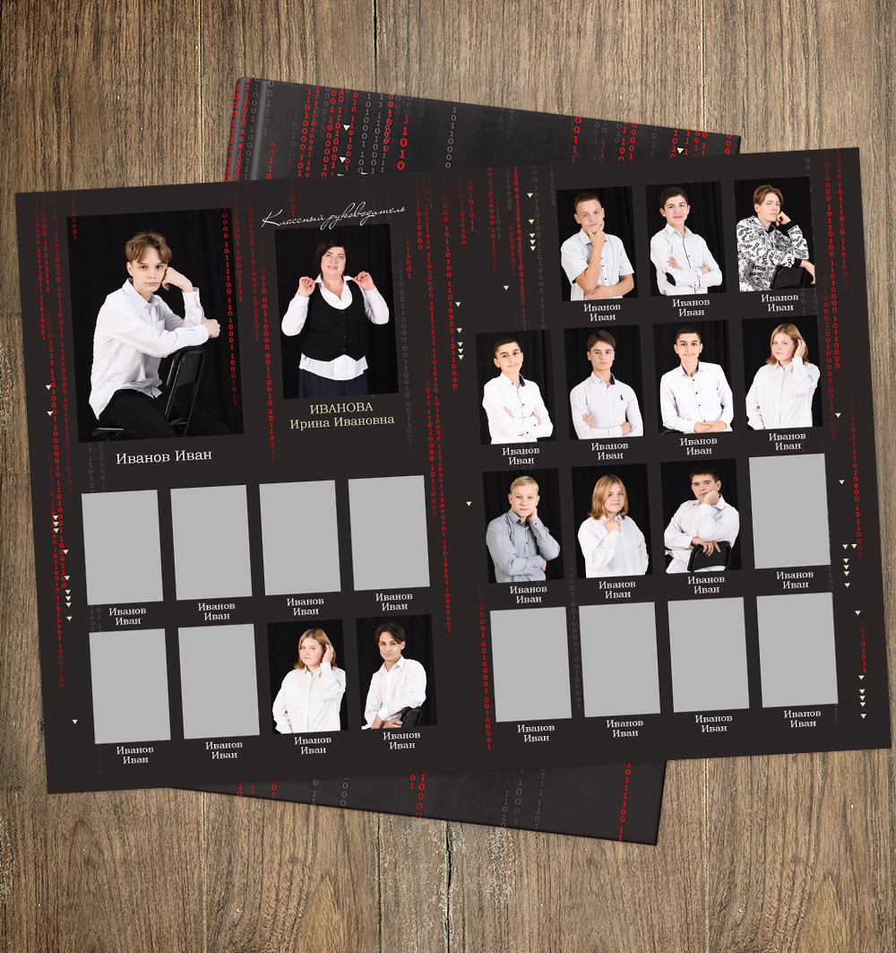 Макет выпускной фотокниги для старших классов "Двоичный код".