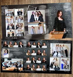 Съемка детей для обложки на темном фоне, как в примере. Вырезать из фона не планируется. Все графики на обложке на отдельных слоях, поэтому можно легко двигать/уменьшать/удалять отдельные элементы при смене фотографий выпускников.