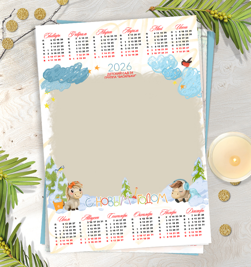 Макет одностраничного календаря "Лошадка 3.0".