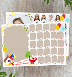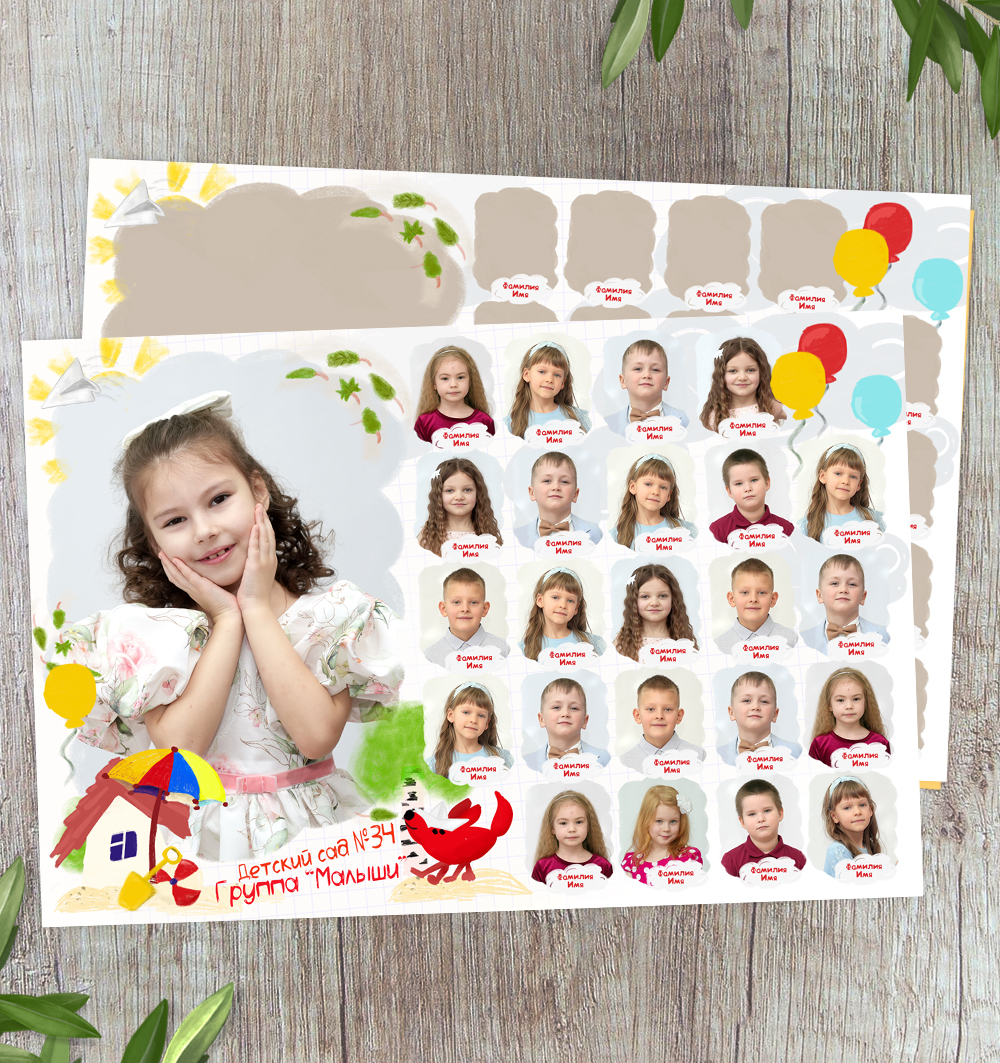 В макете главное фото для одного ребенка и 23 окошка для остальных деток.