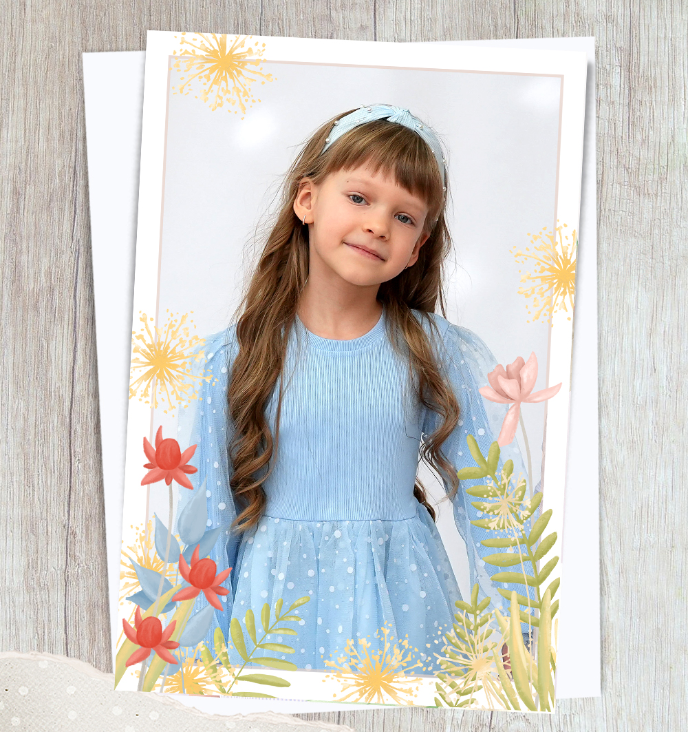 Вырез ребенка из фона не предполагается, фотография ребенка вставляется в основу методом обтравочной маски.