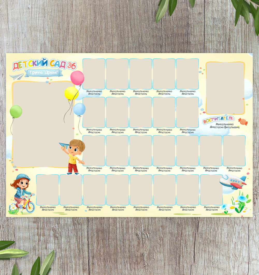 Макет многослойный, поэтому можно отредактировать под любое количество детей.