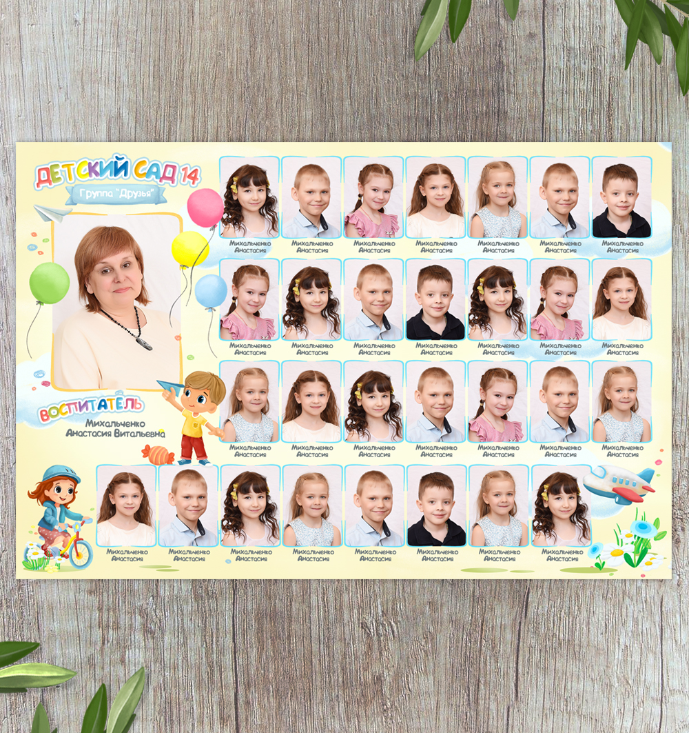 Вариант 2: 1 большое фото, 25 мелких фото, 1 воспитатель.