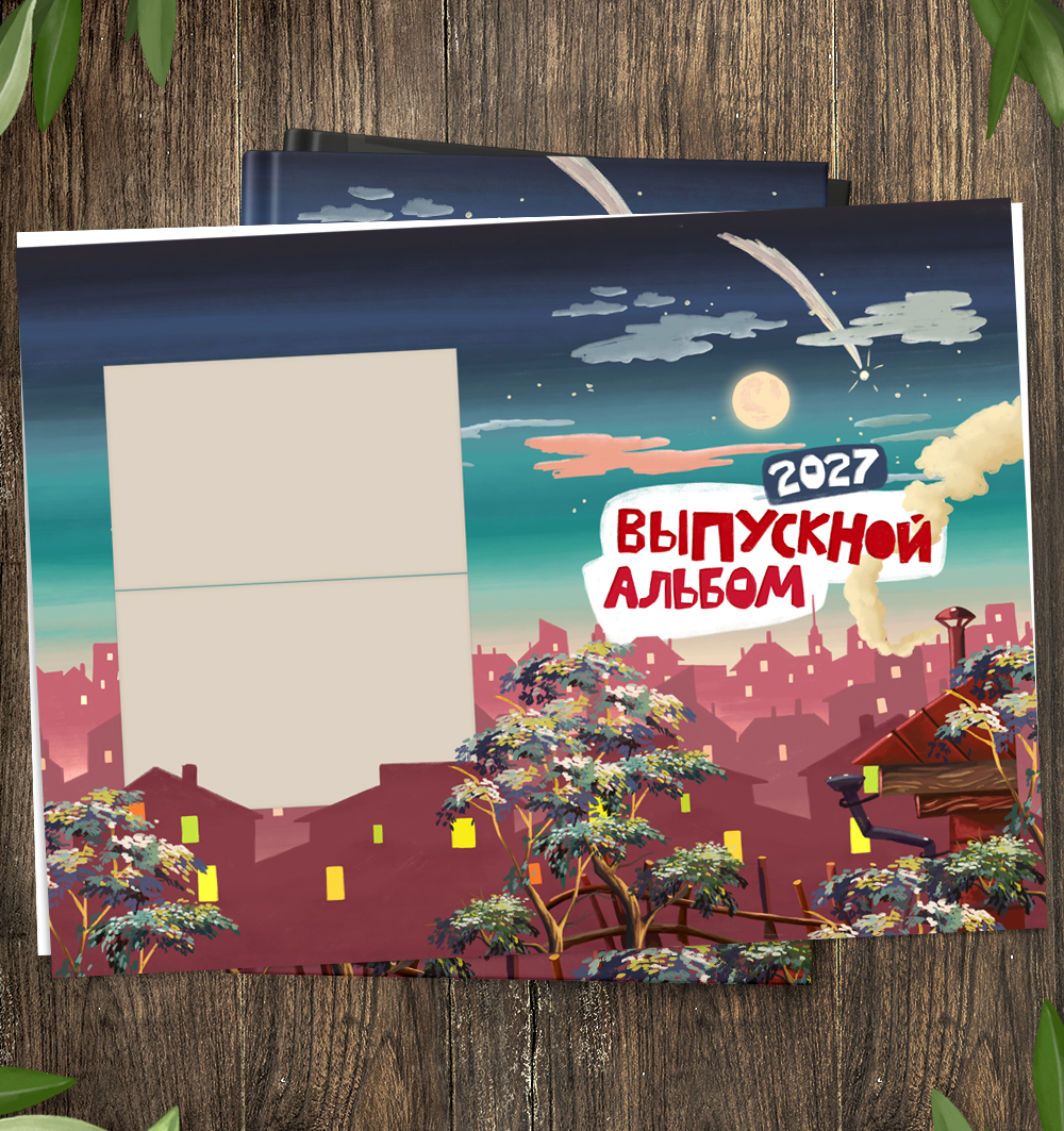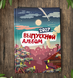 Надпись "Выпускной альбом" одним слоем (рисунок). К макету прилагаются цифры от 0 до 9 для самостоятельной корректировки года. В макете год прописан до 2030.