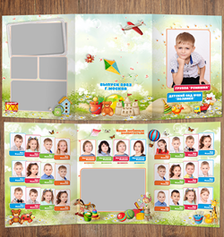 Открыв сторонки-половинки влево и вправо, можно увидеть внутреннюю часть дизайна выпускной папки Трюмо.