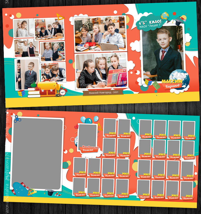 Открыв сторонки-половинки влево и вправо, можно увидеть внутреннюю часть дизайна выпускной папки Трюмо.