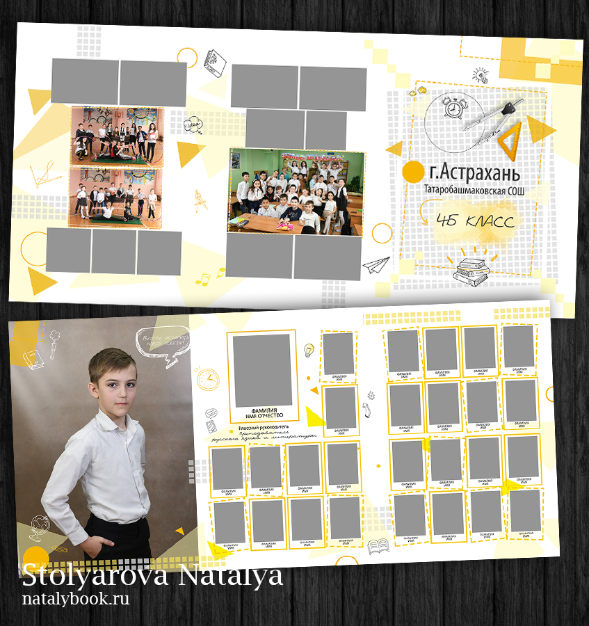 Внутренний разворот: Большое портретное фото + 26 учеников + классный руководитель.